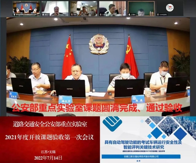 2022年7月14日,由我司牵头承接的公安部重点实验室课题《具有自动驾驶功能的考试车辆运行安全性及智能评判关键技术研究》(编号2021ZDSYSKFKT05)顺利通过专家组验收。在该课题中我司副总经理金来博士牵头组织成立课题组,经过1年的不懈努力按时圆满完成任务。