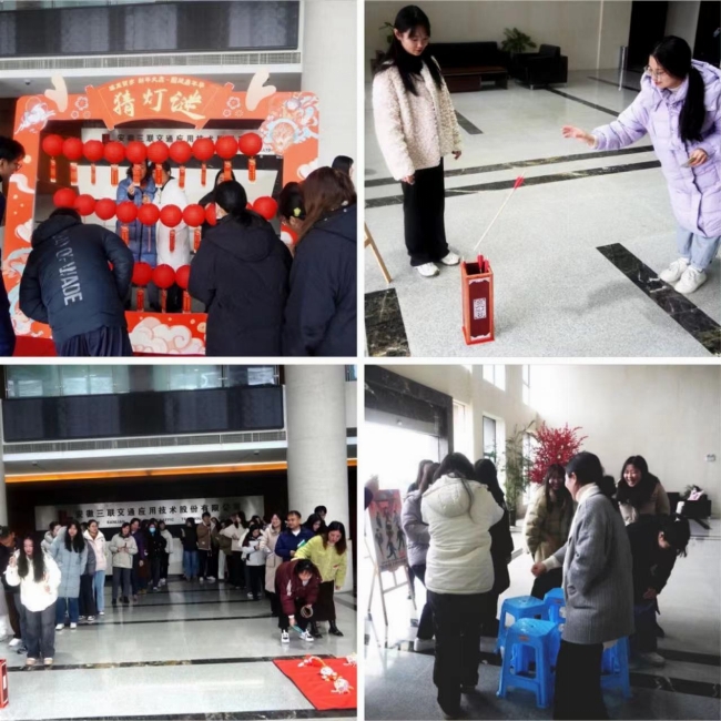 游园会设置了多个趣味游戏摊位,猜灯谜、套圈、投壶、抢凳子和闹钟炸弹等游戏,吸引了众多员工积极参与。活动现场欢声笑语,员工们沉浸在欢乐的海洋中。此外,我们还准备了丰富的奖品,让参与者在游戏中收获喜悦,增进同事间的感情。最后特别设置的抽奖环节,更是惊喜频出、气氛高涨。随着各奖项幸运儿接连揭晓,新春文体活动在现场的阵阵欢呼声中圆满结束。