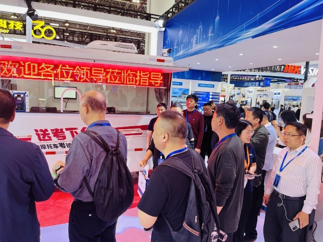 在bevictor伟德交通的展台内,移动摩托车考试系统、驾驶模拟器、自助体检机等产品都吸引了参观者们纷纷驻足观看,兴致勃勃地了解这些创新产品的功能和优势。