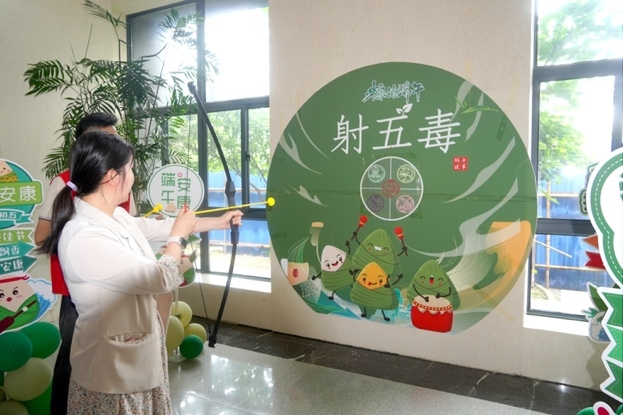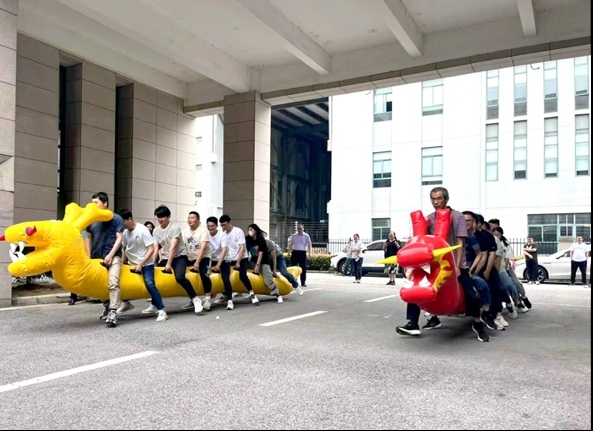 传统的射五毒活动也吸引了众多员工参与,大家纷纷一试身手,体验着这一古老习俗的独特魅力。员工们兴致勃勃地射向象征着五毒的靶子,寓意着驱除疾病、祈求健康。左手夹乒乓球项目充满挑战,选手们全神贯注,展现出良好的协调能力。而旱地龙舟比赛更是将现场气氛推向高潮,团队成员默契配合,力争在旱地上“划”出最快的龙舟,展现了团队的力量和协作精神。