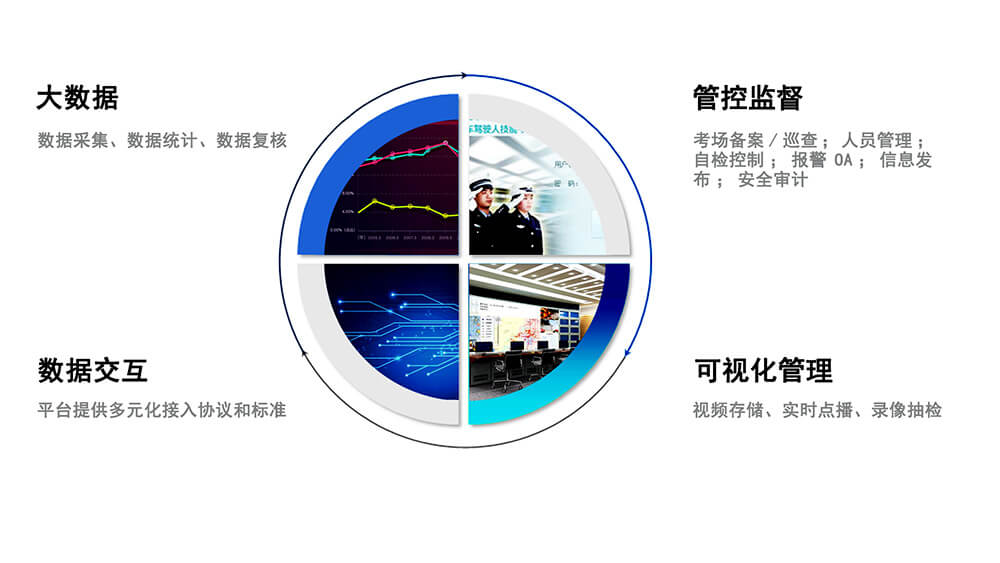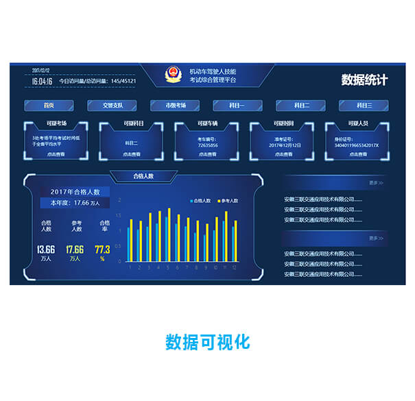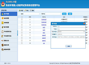 SL3001B型机动车驾驶人驾驶技能考试系统综合管理平台,是省、市级车管所等管理机构管理下属机动车驾驶人考试机构的管理平台,主要用于监管所辖考场的考试情况及对考试结果进行复核。系统以专网作为传输通道,利用云存储方式通过低码流压缩技术对前端音视频进行集中存储,对车驾管业务的各类数据等进行实时监管,并且能够通过B/S客户端、C/S客户端、移动客户端(移动APP)执行各种监管操作。系统主要包括考场管理、考试监管、视频监管、系统管理、通用接口等功能模块。该管理平台能有效提高车驾管工作的效率,改善现有工作方式方法,真正做到考试过程公平、公正、公开,实现车驾管工作水平更上一个新台阶。