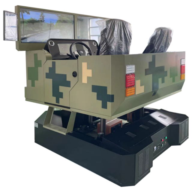 ③三自由度平台(座椅)在车辆行驶中产生与地形起伏相一致的颠簸,使车载人员练习时具有实车行驶中的俯仰、侧滑、碰撞、震动、淤陷、涉水等感觉,便于维护,能够安全合理地进行紧急停止。