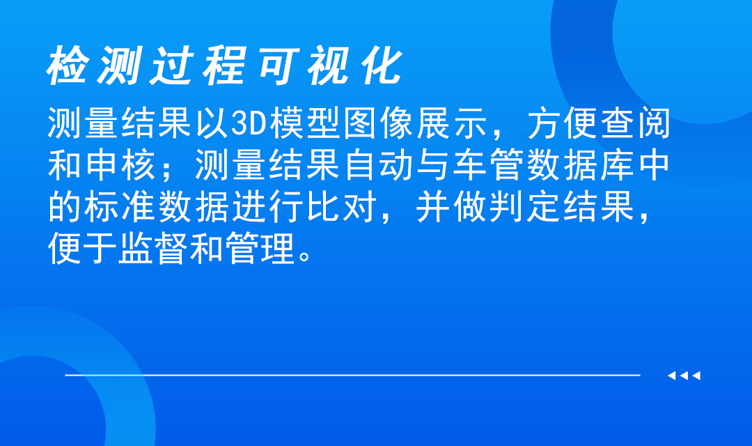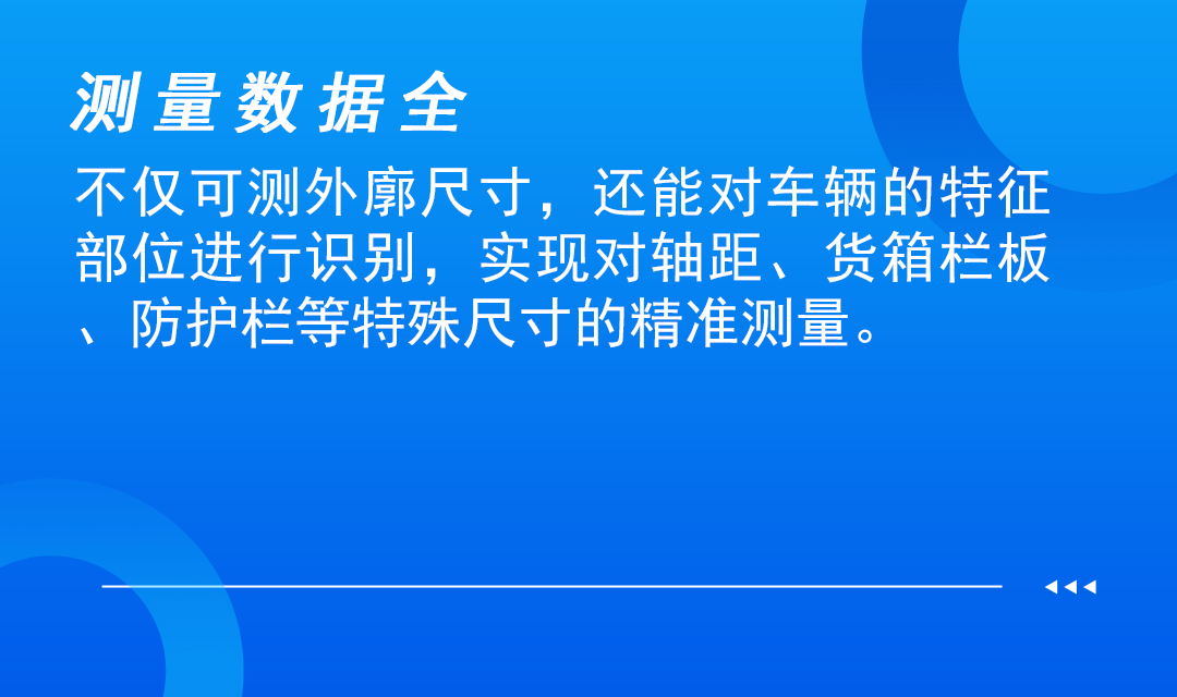 bevictor伟德交通机动车外廓尺寸自动测量系统创新性的实现了对于车检过程中匀低速行驶车辆(3-5km/h)的动态测量,该系统利用前沿深度学习模型、深度点云重建及分割算法、点云部件检测技术等宽横向深纵向领域技术,利用高精度线激光雷达及工业相机进行2D、3D融合动态建模,实现对于车辆外廊及轴体、货箱栏板等其他部件的高精度测量。该系统进一步推进了在机动车外廓检测领域的自动化及标准化,最大化的减少人为因素对高精度测量作业的影响,为机动车检测提供准确数据。该系统实现了车辆三维建模、车辆尺寸测量、车辆视频监控实时展示、车辆部件测量、用户信息管理、检测报告打印和历史信息查询等功能。具有自动化程度高、测量速度快、测量精度高、检测过程可视化、检测功能强大等特点,广泛应用于查验、检验及车辆下线检测等场景,同时该产品和技术具备广泛的衍生能力,能够运用于军工、汽车主机厂、交通超限检查等场景。